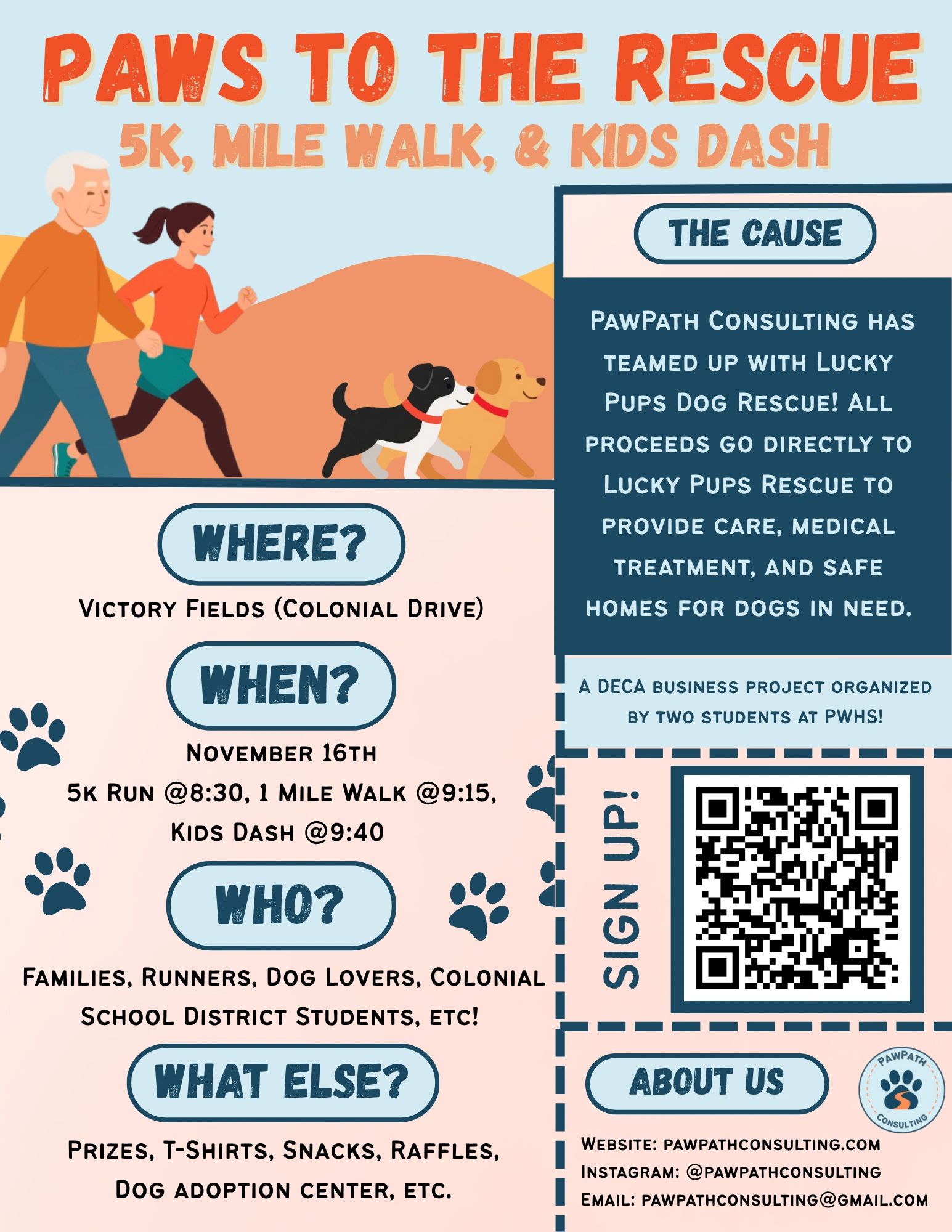 Paws to the Rescue 5K serves as both a fundraiser and an opportunity to amplify the mission of local dog rescues like Lucky Pups, while engaging with our supportive community. All proceeds go directly to Lucky Pups Rescue to provide care, medical treatment, and safe homes for dogs in need.